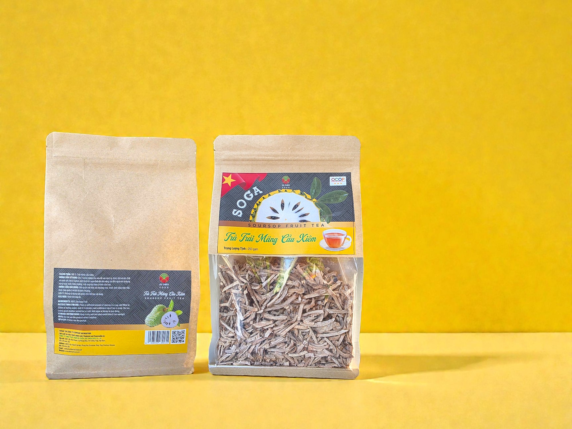 Soga trà trái mãng cầu xiêm  là một sản phẩm trà trái cây tự nhiên, được đóng gói trong túi lọc tiện lợi. Sản phẩm này không chứa phụ gia, hóa chất hoặc chất bảo quản nhân tạo, mang lại sự tự nhiên và an toàn cho người tiêu dùng.