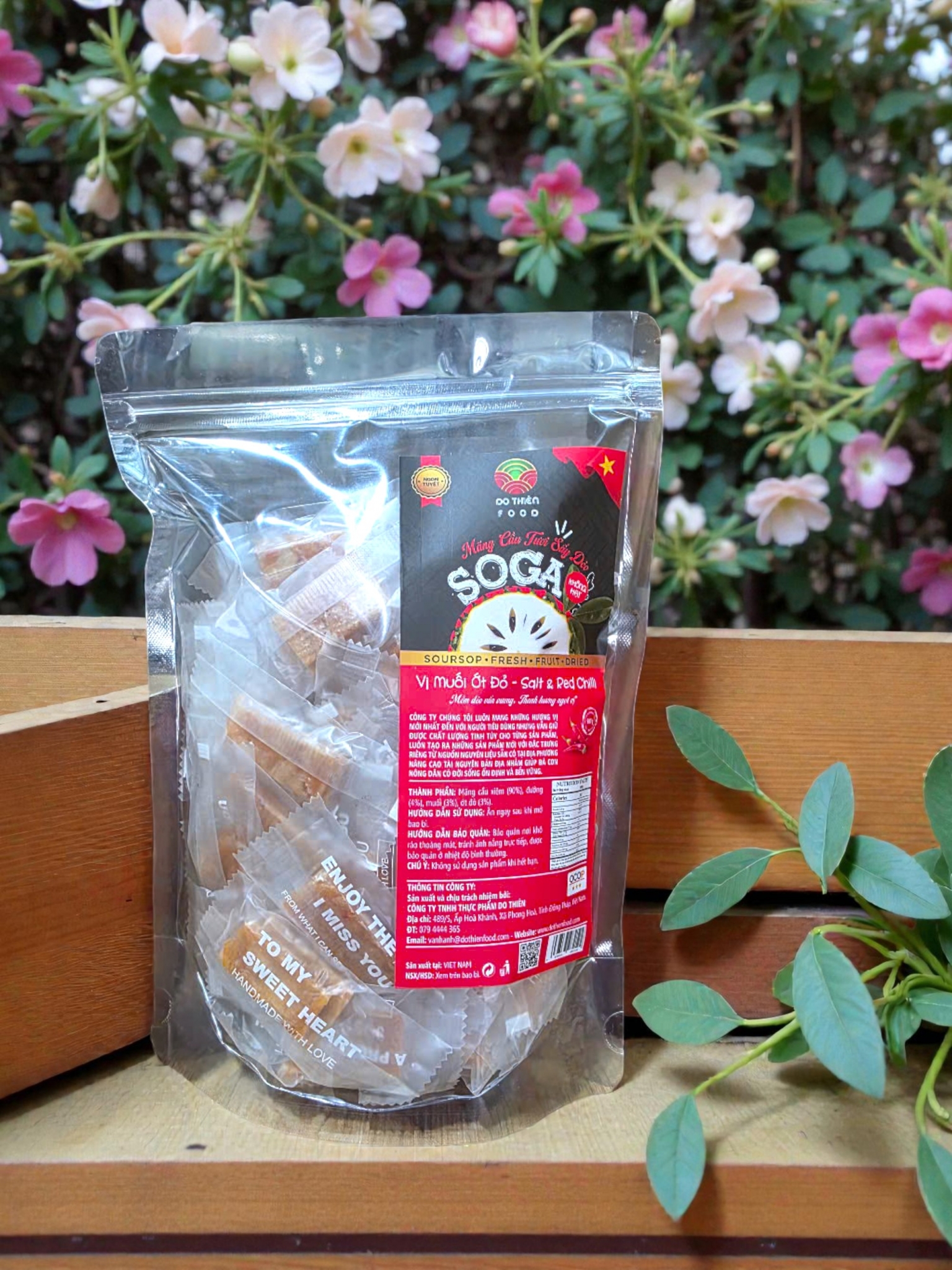 The product Soga dried fresh soursop with red chili salt flavor not only meets the need for diverse flavors but also brings nutritional benefits. Soursop is rich in vitamin C and antioxidants, which help strengthen the immune system and protect health. The product is also low in fat and cholesterol-free, suitable for those who care about their health and healthy diet.