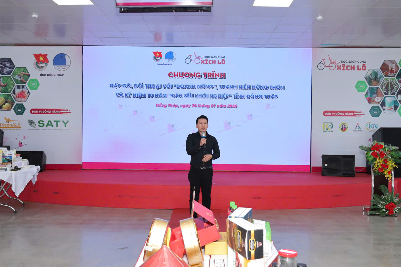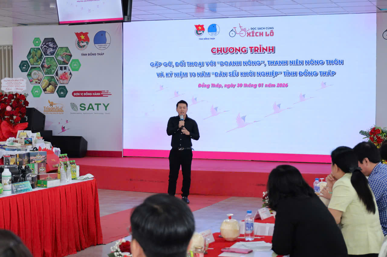 Tại buổi đối thoại, anh Đặng Quý Ngọc tự hào giới thiệu sản phẩm mãng cầu xiêm Do Thiên – kết tinh từ tâm huyết người trẻ và giá trị nông sản bản địa. Câu chuyện khởi nghiệp từ trái mãng cầu xiêm không chỉ tạo sinh kế cho nông dân mà còn góp phần xây dựng thương hiệu nông sản Đồng Tháp.